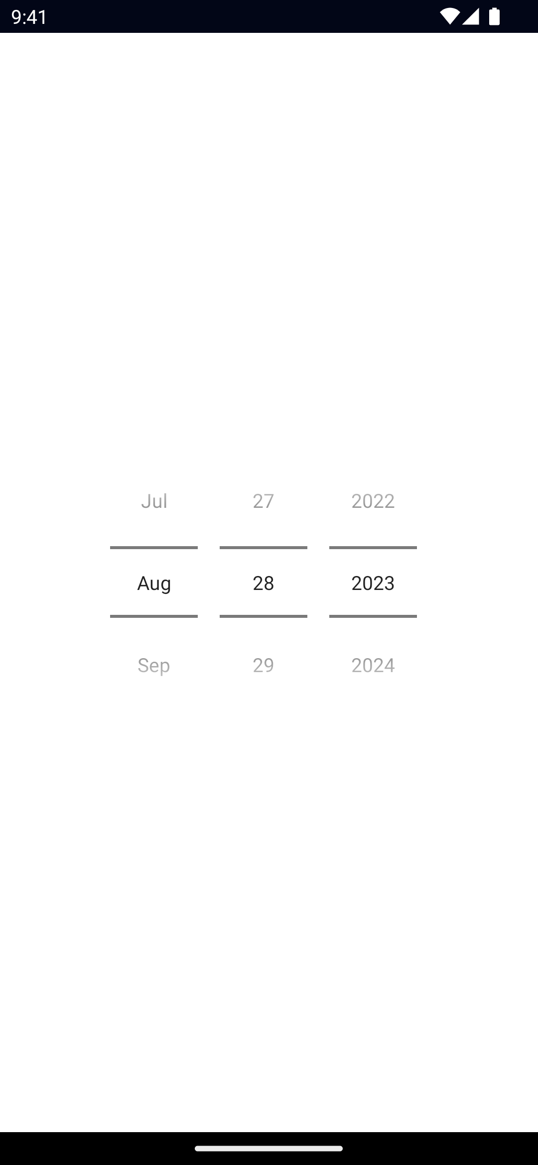• 1 = wheels: the DatePicker displays as a wheel picker.